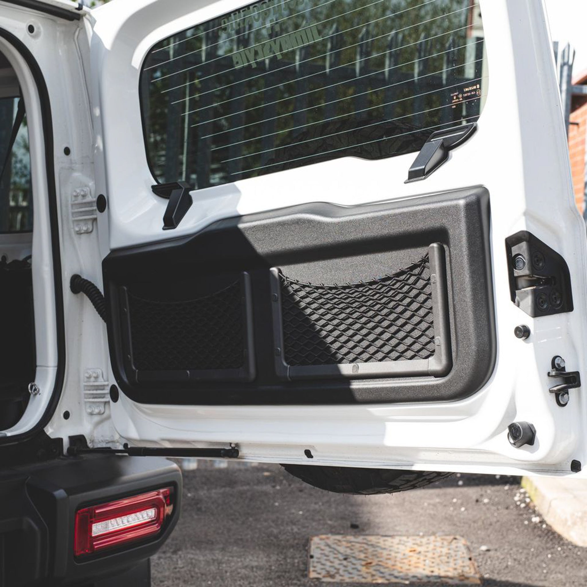 Storage nets are a useful addition to the interior of any vehicle. This plastic-framed net fits brilliantly as a pair on the inside of the Jimny's tailgate, as seen on our car in the photos. The plastic frame adds strength and rigidity.