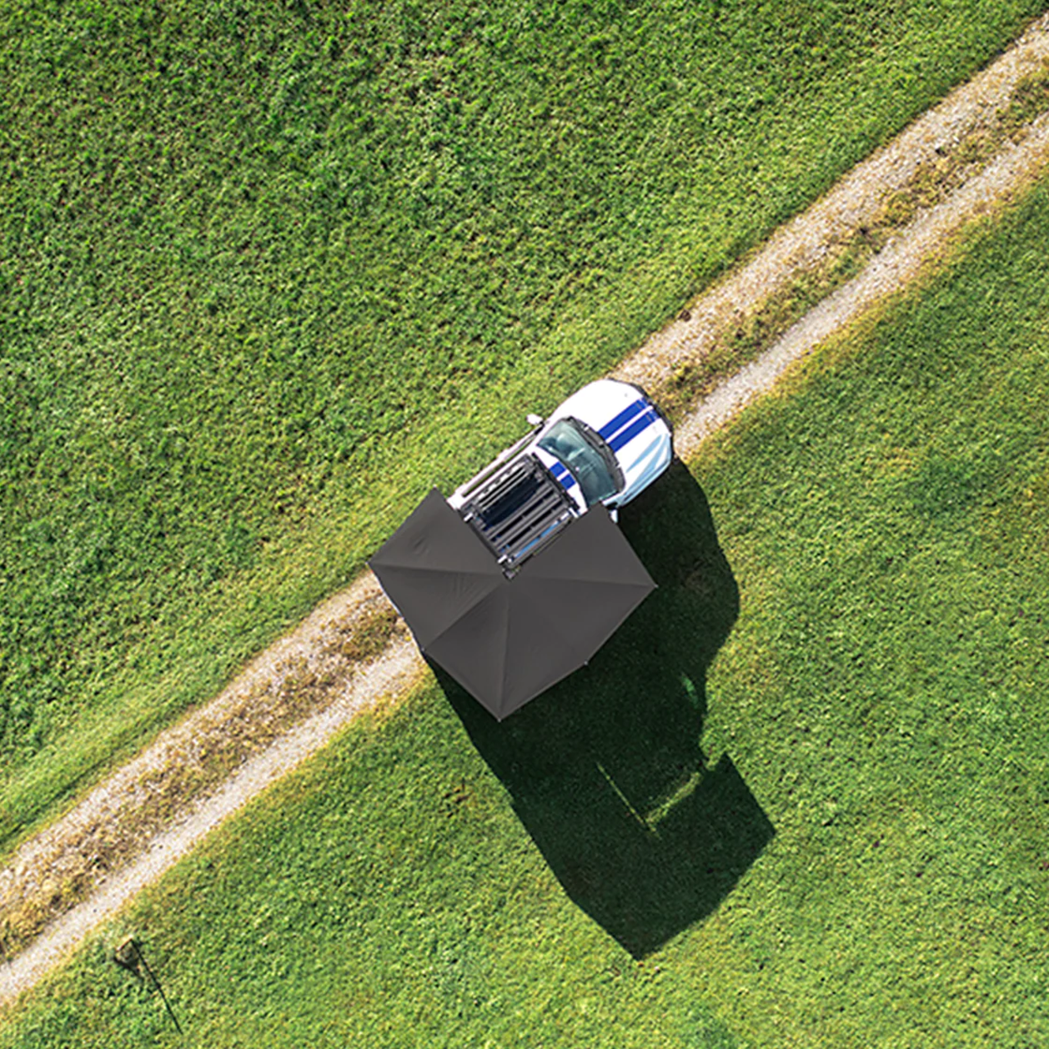 The benefit of a 270 degree awning (compared to a regular side awning) is that it offers shade and protection at the rear of your car, as well as at the side. This ensures that you can remain covered even when accessing luggage from the back of the car.